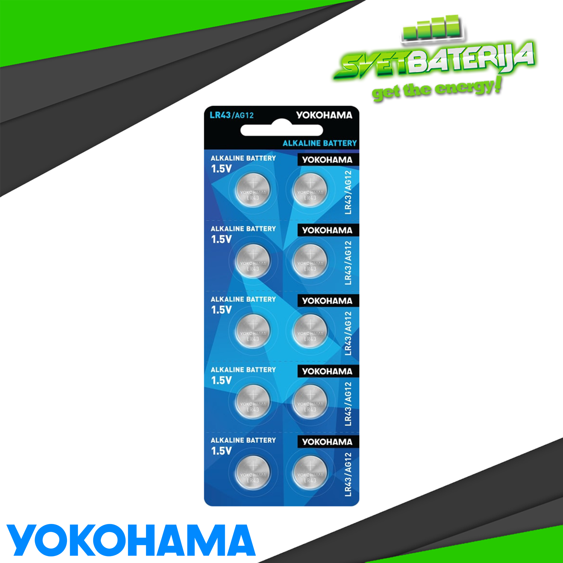 Specijalna YOKOHAMA LR43 (AG12) alkalna baterija dugog životnog veka, širokog raspona radne temperature, otporna na curenje. Upotreba u uređajima za svakodnevno korišćenje, kao što su: digitron, vaga, sat, daljinski upravljač, itd.