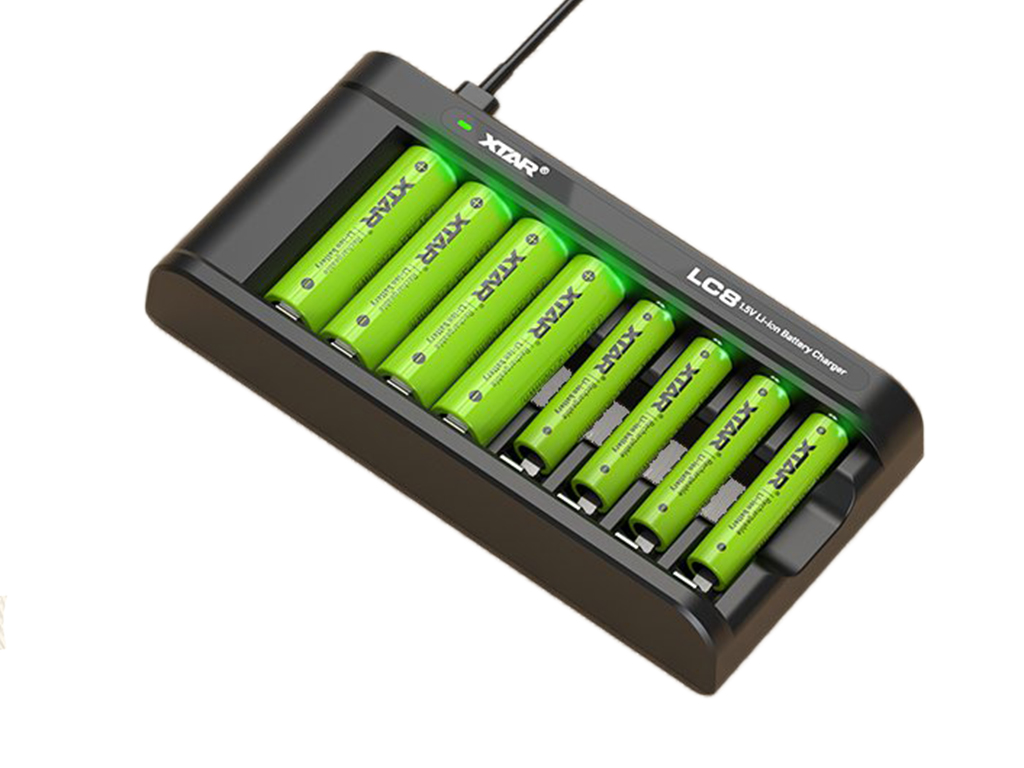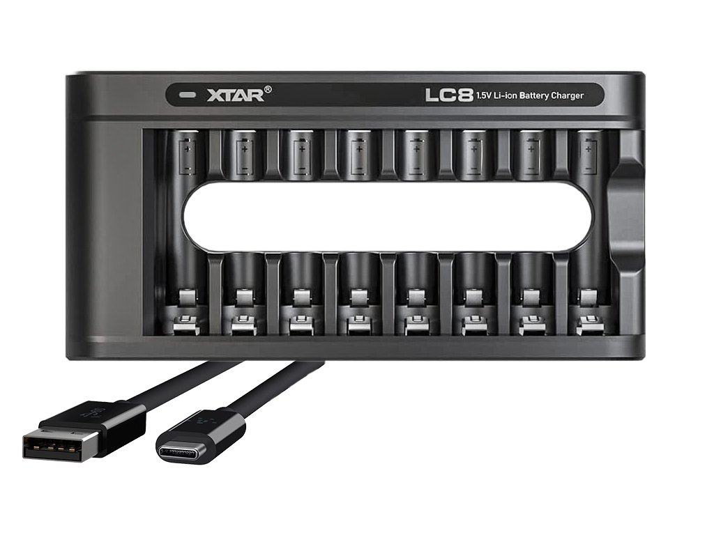 XTAR LC8 je specijalno dizajniran punjač sa USB-C ulazom koji puni litijumske AA i AAA 1.5V baterije. Njegov dizajn obezbeđuje bolje odvođenje toplote, a uređaj može i da oživi prepražnjene baterije. Potpuno puni 8 AA baterija za samo 2,7 sati ili 8 AAA baterija za 1,5 sati. Pametno punjenje čini upotrebu sigurnom i pouzdanom